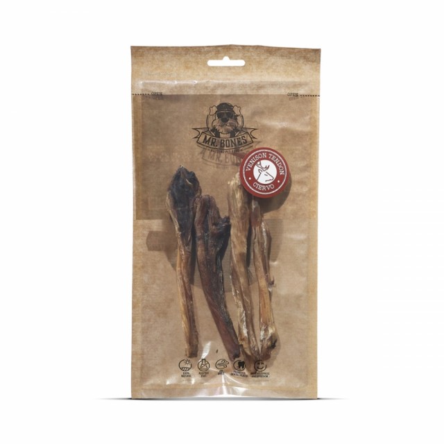 Mr. Bones 100 % lufttørkede hjortesener er en ren og naturlig Snacks, skånsomt lufttørket for å bevare både smak og næringsstoffer. Den seige konsistensen gir ekstra lang tyggetid og er perfekt for hunder som elsker å jobbe litt med snacken sin.