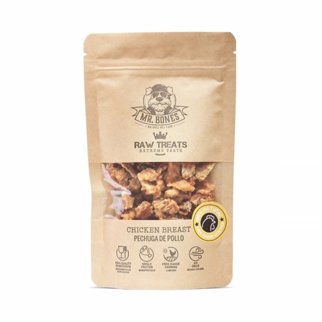 Raw kyllingbrystgodbiter er premium-godbiter for hunder og katter laget utelukkende med lavtemperaturtørket kyllingbryst.