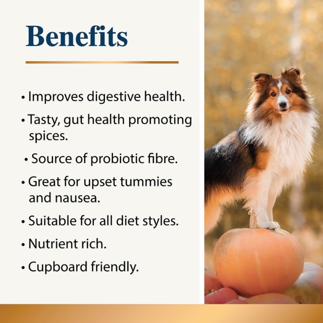 Karnlea gresskar- og krydderpulvertopp er rik på prebiotisk fiber, som betyr at den gir næring til de gode bakteriene i hundens tarm og fremmer et sunt mikrobiom. Et sunt mikrobiom er avgjørende for kjæledyrets generelle helse.